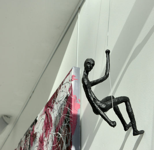 De zeer getalenteerde Thaise kunstenaar Tanop Wichyanundh ontwierp de uit hars gefabriceerde 'Climbing man'. Dit zijn 3 beeldjes die om ter snelst en op speelse wijze hun weg naar de top zoeken. Elk beeldje is volledig met de hand gemaakt door de kunstenaar zelf. Het is een uniek wandobject ideaal in traphal of vide.